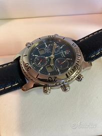 Cronografo e funzuine sveglia, cinturino pelle (in foto) più acciaio. Ottime condizioni.