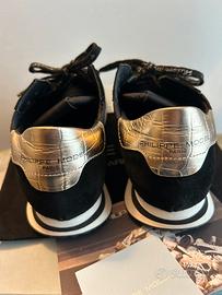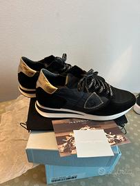 Sneakers Philippe Model donna, taglia 38, modello Mondial Croco in camoscio e tessuto, colore nero con dettagli oro.