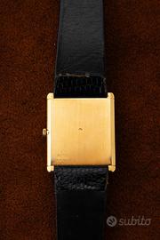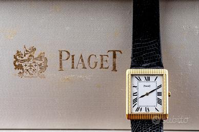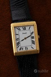 Piaget ref. 9151 – Cassa in Oro 18k – Calibro 9P – Quadrante Romano – Corredo Un grande classico dell’alta orologeria svizzera, questo Piaget con cassa rettangolare in oro 18k rappresenta alla perfezione l’eleganza pura e senza tempo della maison. Protagonista assoluto è il leggendario movimento Piaget 9P, uno dei calibri manuali ultra-sottili più celebri e apprezzati di sempre: raffinato, affidabile e tecnicamente straordinario. A completare il fascino dell’insieme troviamo il quadrante con numeri romani e la cassa finemente lavorata, oltre a un corredo davvero raro e prezioso: scatola originale e fibbia Piaget. Un dress watch di altissimo livello, iconico e collezionabile, perfetto per chi cerca un Piaget autentico e “di sostanza”. Caratteristiche principali •Marca: Piaget •Modello: Orologio dress rettangolare •Referenza: 9151 •Anno di produzione: 1965-1972 •Movimento: Meccanico a carica manuale Piaget (cal. 9P) •Cassa: Oro 18k •Dimensioni: 23 •Quadrante: Bianco con numeri romani •Funzioni: Ore, minuti •Vetro: minerale •Cinturino: Pelle nera •Fibbia: Piaget (inclusa) •Corredo: Scatola originale Condizioni L’orologio si presenta in ottime condizioni generali, con una presenza al polso elegantissima e una qualità percepita altissima, tipica di Piaget. Il quadrante è molto pulito e leggibile, e la cassa in oro mantiene un impatto estetico importante ma estremamente raffinato.