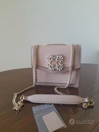 colore cipria, con catena a tracolla metallica regolabile ed inserti gioiello. Chiusura automatica. Nuova.