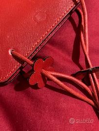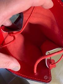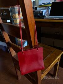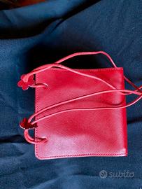 Piccola borsetta a mano in vera pelle di colore rosso, comprata in centro Cagliari in una pelletteria artigianale misure sono 14x15 cm.