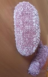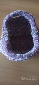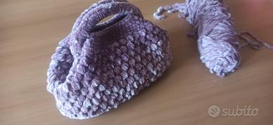 piccola cloche bag è realizzato con punto nocciola in ciniglia color lilla con base lunghezza 24 cm piccola ma capiente