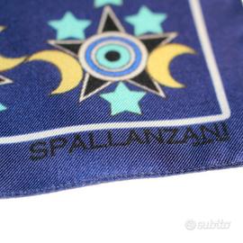 Piccolo foulard da donna di Spallanzani in 100% seta, blu con fantasia luna e stelle.