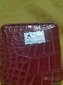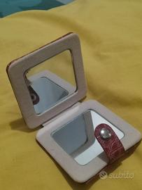 Specchietto da borsetta, nuovo, colore rosso, inserti argentati, chiusura bottone. Mai usato