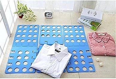 Vendo un pratico piegavestiti (anche noto come piegabiti o fast folder) di colore blu, come quello reso popolare da Sheldon Cooper in "The Big Bang Theory". Questo accessorio in plastica resistente e durevole permette di piegare magliette, camicie, pantaloni e altri indumenti in soli 3 semplici passaggi e in pochi secondi, ottenendo un risultato uniforme e professionale. Ideale per organizzare l'armadio, risparmiare tempo prezioso nel bucato e ottimizzare lo spazio. Lo vendo per svuotare casa e liberarmi da alcuni prodotti.