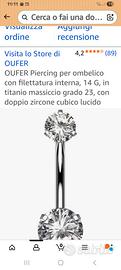 Oufer Body Piercing ombelico in titanio massiccio 14G con zirconia misura 12 mm acquistato misura errata