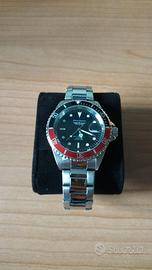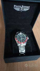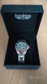 Elegante orologio da polso Pierre Bonnet con cinturino in acciaio e lunetta bicolore rossa e nera.