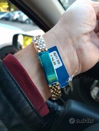 Cassa in metallo con fondo a pressione trattamento IPS-IPGold che rende l' orologio lucido e resistente all' usura nel tempo Diametro cassa 28 mm
