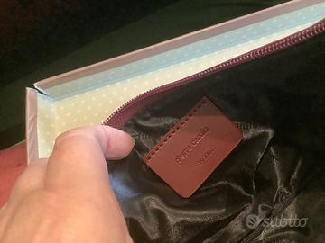 Comodissima multiuso questa pochette di Pierre Cardin, raffinato color bordeaux, con logo in continuum.