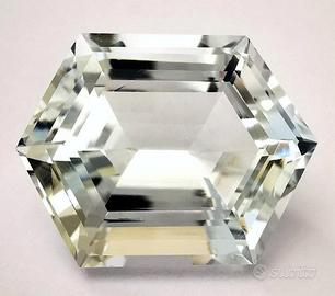 Splendido Berillo Goshenite Naturale – 17,80 ct In vendita un eccezionale esemplare di Goshenite (Berillo incolore), una gemma che incarna la purezza assoluta. Caratterizzata da una trasparenza cristallina e da un'assenza totale di colore, questa pietra rappresenta la varietà più limpida della famiglia dei berilli (la stessa di smeraldi e acquamarine). Dettagli Tecnici dell'Esemplare Varietà: Berillo Goshenite Naturale Peso: 17,80 carati Purezza: Loupe Clean (Pura alla lente), il grado massimo di brillantezza e trasparenza. Taglio: Taglio a gradini esagonale (Hexagonal Step Cut), una scelta sofisticata che esalta la geometria naturale della pietra e la sua profondità. Dimensioni: 19.69 x 15.22 x 10.51 mm Trattamento: Nessuno (Pietra completamente naturale). Certificazione e Garanzia La gemma è accompagnata da un report ufficiale dell'ALGT (Antwerp Laboratory for Gemstone Testing), numero di perizia 20909836, che ne attesta l'autenticità e le caratteristiche di pregio. Punti di Forza Grazie alla sua caratura generosa e alla purezza impeccabile, questa Goshenite è ideale sia come pezzo da collezione, sia per la realizzazione di un gioiello esclusivo dal design moderno e architettonico. Una gemma "eclatante" che cattura la luce con eleganza senza tempo. Accetto proposte