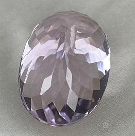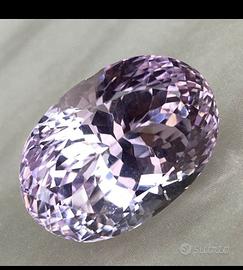 Pietra di kunzite viola 21.77 carati! Kunzite ha due direzioni di sfaldatura perfette. È pleocroico, con il miglior colore visibile quando si guarda lungo la lunghezza del cristallo. I suoi bellissimi colori lilla-rosa lo rendono attraente per Gioielli/ Collezionisti Tipo di gemma: Kunzite naturale Specie: Kunzite naturale Dimensioni: 19.58 x 13.57 x 12.07 mm Purezza: Trasparente Colore: Viola Pink Forma: Ovale - Taglio a gradini modificato Origine: Brasile Trattamenti: Vedi Certificato Rapporto: ICA TH26G115685