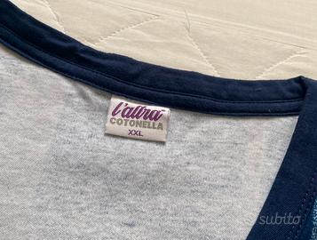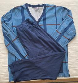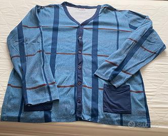 Pigiama completo a due pezzi con maglia superiore aperta con bottoni a modi giacca. Marca l’altra cotonella , taglia XXL. Cotone 100% Usato una volta.