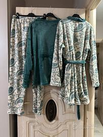 Pigiama da donna composto da tre pezzi, maglia pantalone e vestaglia, in morbido e caldo pile, mai indossato, taglia XXL , calza perfettamente una taglia 48 italiana