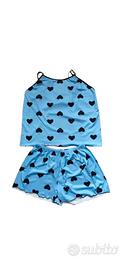 Pigiama da donna Pigiama T-shirt Pantaloncini T-shirt girocollo con stampa rosa a forma di cuore Top in seta ghiacciata Comodo casual estivo