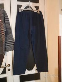 Pigiama da uomo taglia 58 felpato, caldo ed elastico (non è di pile). Disponibili, per cambio guardaroba, altri pigiami, camicie da notte, vestaglie, alcuni capi per cerimonia (1 abito da sera, 1 abito da sposa, coprispalle, gonne, veli, corsetti, 1 stola in ecopelliccia color avorio per spose d'inverno, 1 paio di scarpe da sposa color avorio a punta con cristalli mis. 39), giacconi e cappotti anche imbottiti, smanicati, giubbini, giacche, impermeabili, 3 giacconi: 2 in vero montone, 1 in vera pelliccia di lapin, 1 collo di vera pelliccia di volpe,abiti interi e da abbinare, tailleur, alcuni abiti da lavoro, capi di jeans (pantaloni, salopette premaman, gonne, camicie), gonne, shorts, bermuda, leggings, pantaloni, pullover a collo alto, scollo a V e tondo, cardigan, sottogiacca, camicie, polo, gilet per uomo, donna, bambino per 4 stagioni, anche taglie calibrate + borse per la città e per le escursioni, zaini, beauty-case, pochette per il trucco e portatutto, portafogli, scarpe, stivali, sandali, cinture, foulard e sciarpe grandi e piccole, cravatte anni 70-80-90, cappelli, guanti, bijoux, portagioie.