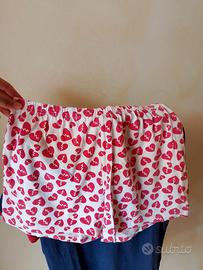 Composto da una t-shirt blu scura con dettagli rossi e pantaloncini a fondo bianco con cuori rossi.