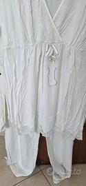 Comodo pigiama da donna in cotone, perfetto per il riposo. - Tessuto morbido e traspirante. - Design con scollo a V e laccetto in vita. - Dettaglio in pizzo sull'orlo.