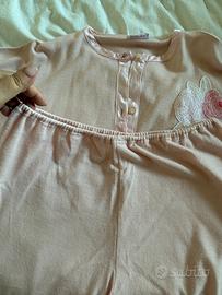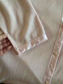 Pigiama donna della marca Ragno, in un delicato colore rosa. - Set composto da casacca e pantalone. - Casacca con scollo rotondo e chiusura a bottoni e ricamo sulla spalla - Pantalone lungo. - Tessuto leggero e confortevole. ( lana )