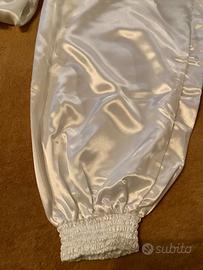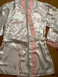 Taglia 2, misure in foto. Giacca a vestaglia con taschino e cintura. Pantaloni elastici in vita e arricciatura alle caviglie. Nuovo, no scatola originale, ma sua velina. Si inviano ulteriori foto su richiesta