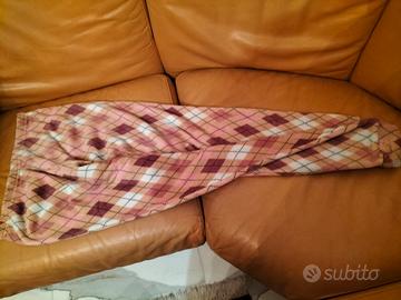 Pigiama Donna invernale, colore panna e rosa, molto comodo e caldo, 4 bottoncini per apertura colletto , dello stesso colore e motivo dei pantaloni. NUOVO con cartellino , taglia XL.