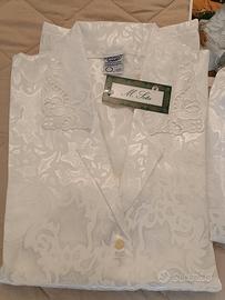 Pigiama da donna lungo elegante, color panna, con ricami sul colletto e ai polsini per la parte superiore. Taglia 46.