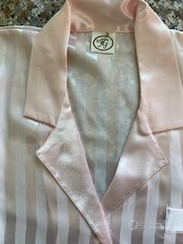 Pigiama da donna color rosa in tessuto satinato, elegante e luminoso.