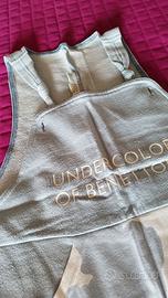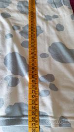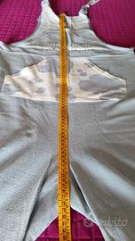 Bellissimo indossato ma in perfette condizioni, composto da 2 pezzi tuta e maglietta dai colori pastello fantastici. Disegni con nuvolette, riporta taglia S ma vestibilità fino ad una L vi assicuro che è un pezzo unico 😉