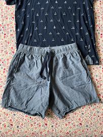 Pigiama primavera/estate 100% cotone. Pantaloncino con coulisse e maglietta con fantasia a barchette. Mai indossato perché taglia errata.