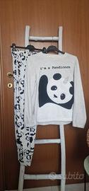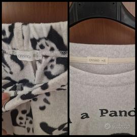 Pigiama Oysho in micropile. Maglia tg S colore grigio perla chiaro con applicazione di un simpatico pandi...corn. Pantaloni tg XS con elastico in vita, polsini in fondo alle gambe e stampa panda all over. Condizioni ottime. Misure: