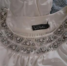Pigiama palazzo Pierre Mantoux composto da top con scollo gioiello e pantaloni semplici bianchi in seta.