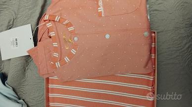 Splendido pigiama per donna .Cotone 100%.taglia M . Color malva .Aperto con bottoni sul davanti. Nuovo nella sua confezione originale, come si vede nella foto. Prezzo d'acquisto €24,90.