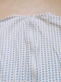 pigiama sanitario intero. taglia L ,cotone ,made in Italy. Nelle foto si notano delle macchie che non ne compromettono l'utilizzo. Cerniera posteriore perfetta.