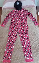 Pigiama taglia S, colore rosa con disegni di Topolino e cappuccio. Usato poche volte, è un pigiama intero a tutona con bottoni