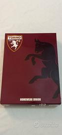 Vendo pigiama invernale del Torino F.C. età 13/14 anni color grigio mélange, granata e blu, il pigiama è nuovo, mai usato con l'etichetta e ancora nella confezione originale. La felpa del pigiama è in cotone e garantisce comodità. Presenta lo stemma del Torino cucito sul cuore.