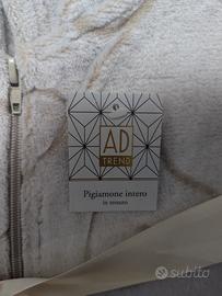 Pigiamone Tutone donna con cappuccio, in morbida Ciniglia, AD Trend. Taglia M. Colore beige, design a cuori. Comoda vestibilità. Molto caldo, ideale per l'inverno. Idea regalo Natale. Nuovo, con scatola e cartellino.