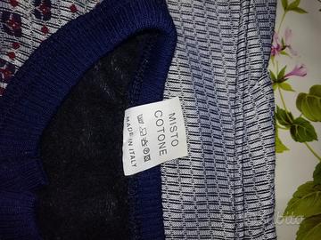 Vendo pigiama da uomo in misto cotone felpato e completo: maglia e pantaloni. La maglia è a manica lunga, a girocollo con bottoni, I pantaloni sono lunghi con elastico in vita. Misura 5
