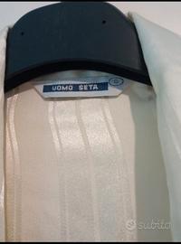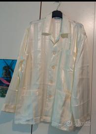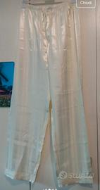 Vendo pigiama nuovo mai usato,come visibile in foto,marcato misura S ma errata,corrispondente a XL.In misto seta,come da etichetta nella foto,colore panna.Ottima idea regalo.Prezzo trattabile.