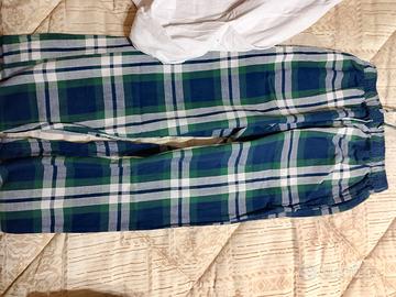 Pigiama a quadri blu bianco e verde con coulisse in vita