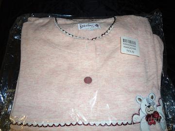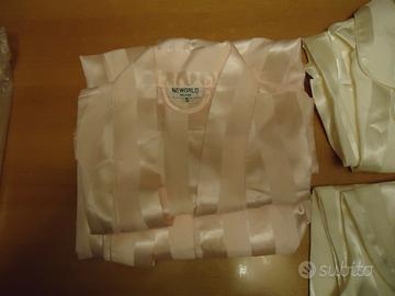 1- Completo pigiama camicia e pantalone 100% seta tg S-M completamente nuovo €38 2- Vestaglia rosa 100% seta completamente nuova tg S/M €30 3- Pigiama invernale completo rosa 100% cotone completamente nuovo. tg M €35 4- Pantalone beige nuovo , 60%polyester,40%rayon tg XL €15 5- Pigiama grigio 100% seta nuovo tg L €15 6- Kimono pigiama completo bimbo 10 anni in 100% cotone €15