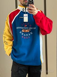 Pile Steffner vintage per le Olimpiadi invernali di Nagano 1998 della squadra olimpica austriaca, loghi e bandiera Austria ricamati frontalmente e logo comitato olimpico austriaco sul collo.