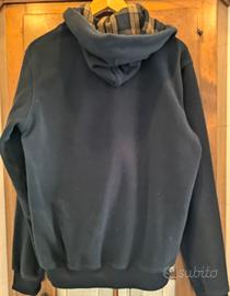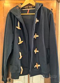 caldo pile da uomo portabile anche come giubbotto Cappuccio, apertura con alamari, 2 tasche, colore blu scuro, 2 tasche, polsi i e fascia in basso. taglia L