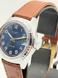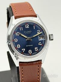 pilsen blue vintage watch nos swiss made 33mm