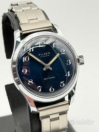 pilsen watch vintage new nos swiss made 33mm blue movimento a carica manuale swiss made funzionante prodotto originale