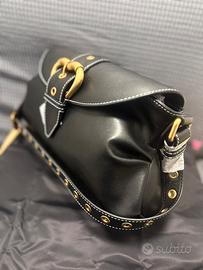 Borsa a spalla Jolene Nera Antique Gold Pinko, elegante sottospalla in morbida pelle impreziosito da borchiette e fibbia a forma di cuore in metallo. Manico singolo regolabile, comparto chiuso con patta e manico supplementare in catena rimovibile. Interno in microfibra scamosciata completo di tasca a parete zippata. Vendo ancora imballata con scatola originale e dust bag Prezzo di listino 280€