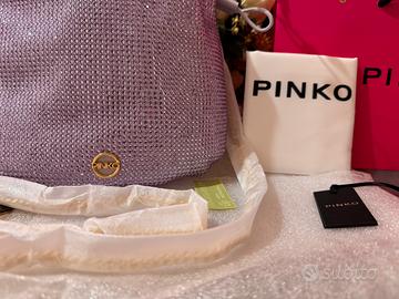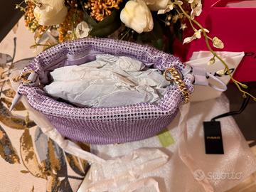Splendida borsa Pinko originale, modello a sacchetto interamente ricoperto di luminosi strass color lilla/lavanda. Un pezzo davvero unico, perfetto per cerimonie, eventi o per dare luce a un look serale. • Condizioni: Nuova, mai usata. Come si vede dalle foto, la tracolla è ancora protetta dal packaging originale. • Colore: Lilla pastello con riflessi brillanti. • Dettagli: Logo Pinko dorato sul davanti. • Inclusi nel prezzo: • Shopping bag Pinko (fucsia) • Dust bag (sacchetto protettivo bianco) • Cartellino di autenticità Un'ottima idea regalo!