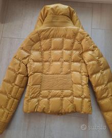 Piumino donna PINKO colore giallo ocre taglia 42, chiusura zip, modello corto sfiancato, due tasche laterali, collo avvolgente. Poco usato. Euro 45.