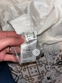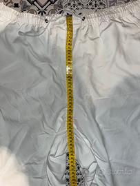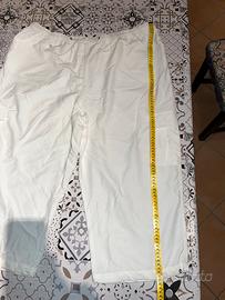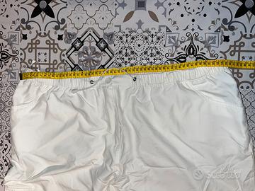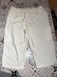 Mai indossato, nemmeno lavato, ha ancora attaccato all’etichetta il bottone di riserva, ha le tasche davanti, dietro e tasconi a metà gamba, bottone e cerniera a zip e laccetto elasticizzato regolabile in vita e a fondo gamba, ha in vita anche l’elastico.