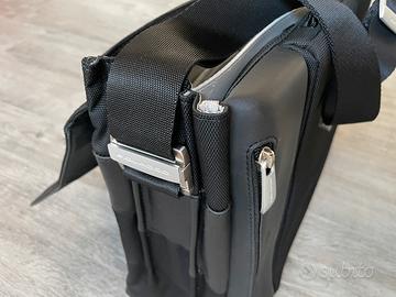 Borsa in pelle/tessuto, tracolla con manico,