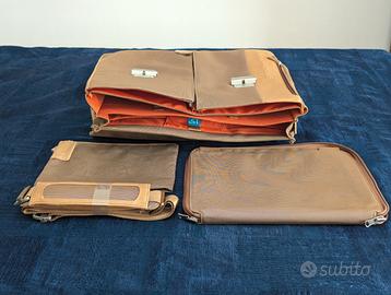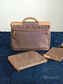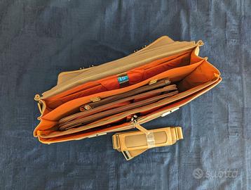 Borsa professionale Piquadro originale, risalente al 2006, mai utilizzata e ottimamente conservata. Colore beige/sabbia con finiture in pelle color cuoi noatrale, interno arancione. Dotata di vano per computer 15 pollici, scomparto centrale porta documenti a soffietto, due tasche verticali, tasca frontale e tasca posteriore con zip. Include due astucci per cancelleria e piccoli accessori e tracolla originale. Consegna a mano a Roma, preferibilmente lungo metro A.