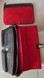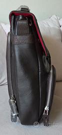 Trattasi di borsa da uomo in pelle marrone con fodera in cotone rosso, nuova e mai utilizzata.